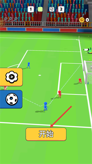 1、点击【开始】按钮,进入火柴人足球比赛,操控蓝色火柴人球员进攻。