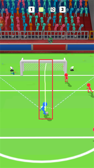 3、绘画完路线后,松开手即可精准将球踢入敌方球门,完成进球。