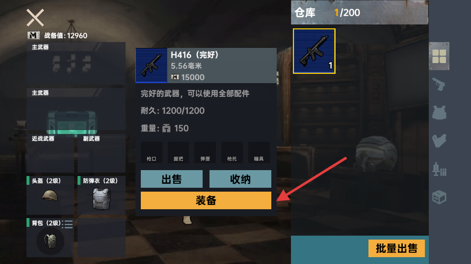 1、装备【H416-完好】武器提升战力,为后续战斗做好准备,能更好应对敌人与隐藏陷阱。