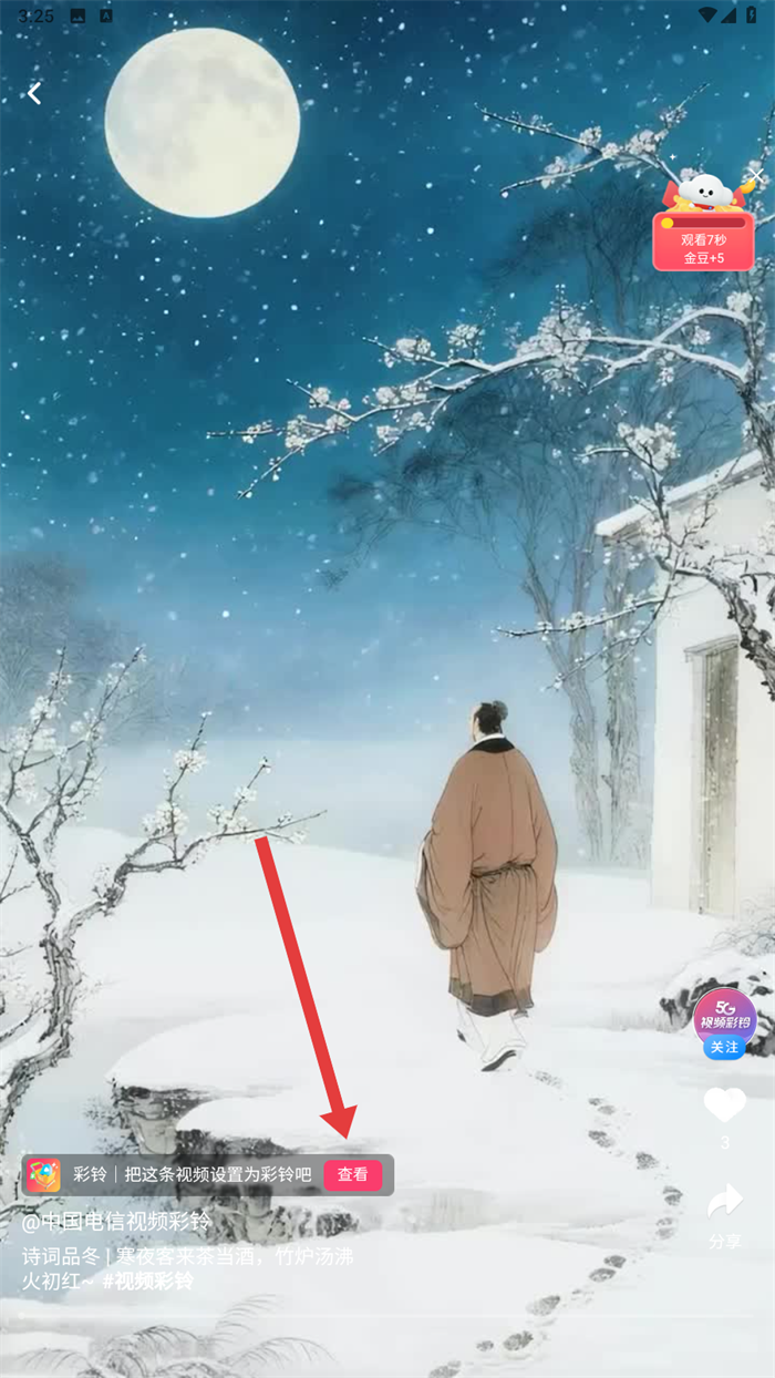 2、在彩铃页面,找到喜欢的彩铃内容,比如【诗词品冬-寒夜客来茶当酒,竹炉汤沸火初红】,点击进入详情页哦。