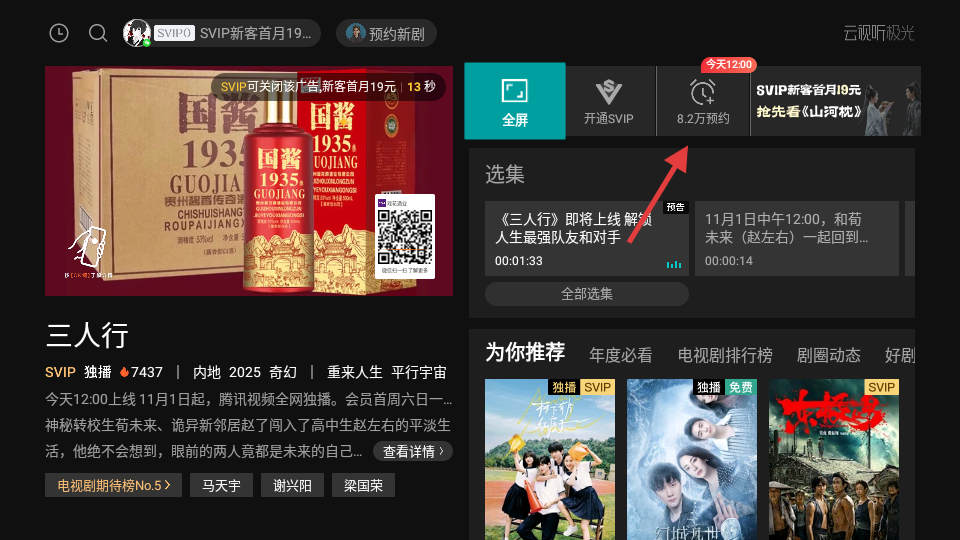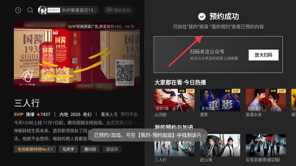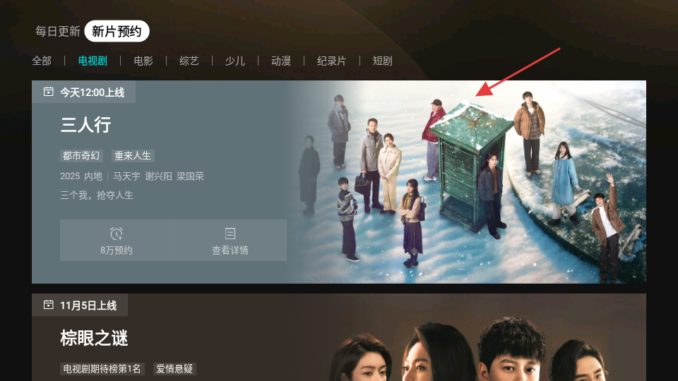 3、在剧集详情页面点击预约按钮,发起预约操作。