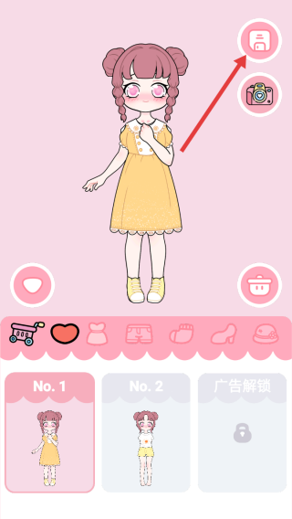 3、点击界面右上角的保存图标,保存已装扮完成的角色形象。
