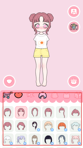 2、在底部装扮栏中选择发型、服饰等部件,为角色搭配造型。