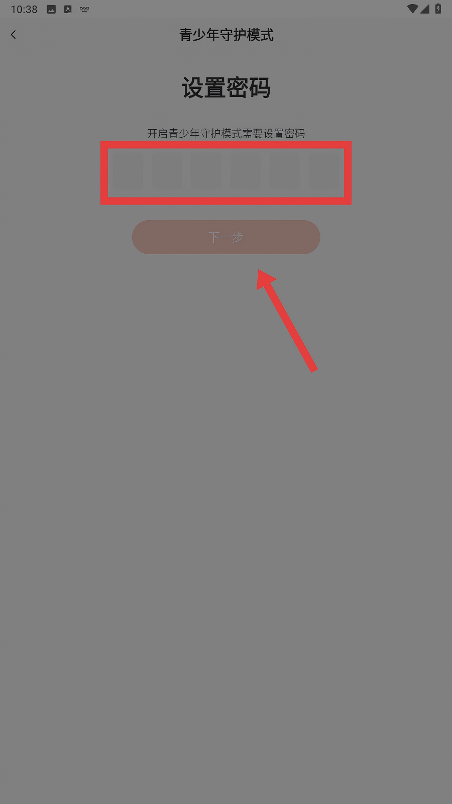 4、在设置密码界面,输入六位数密码后点击【下一步】,就能完成青少年守护模式的开启啦。