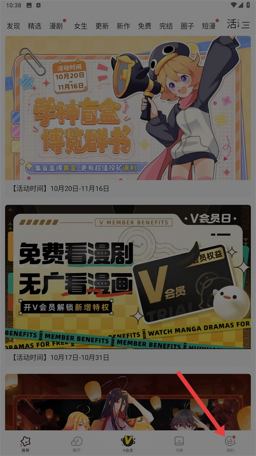 1、在腾讯动漫主界面,点击右下方【我的】界面,这里能找到各类功能入口哦。