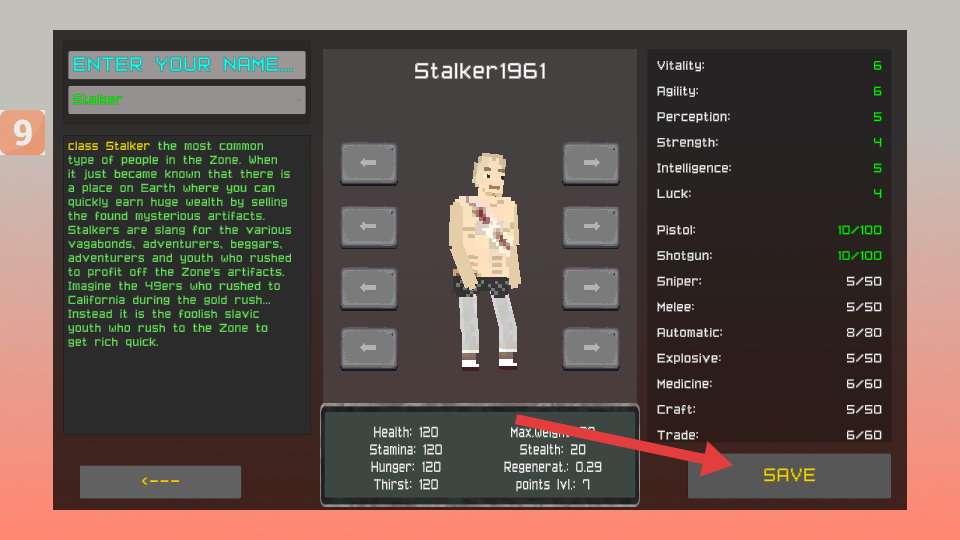 2、设置角色后点击【SAVE】,保存角色信息,继续游戏。