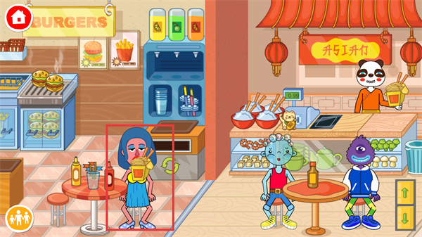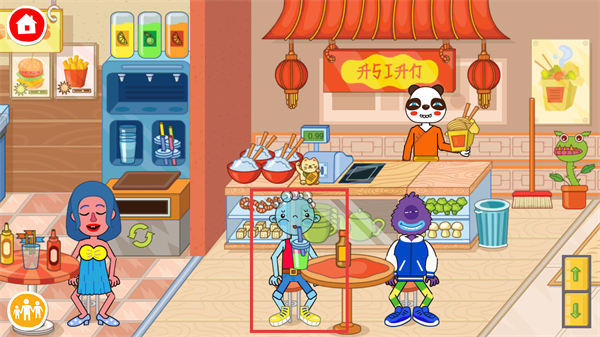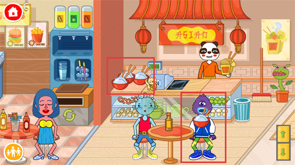 4、取柜台上的米饭递给紫色角色,高效完成多顾客的服务任务。