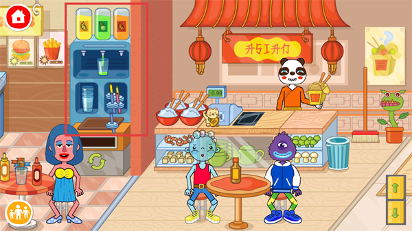 3、将制作好的绿色饮料递给蓝色皮肤顾客,保证服务流程顺畅不中断。
