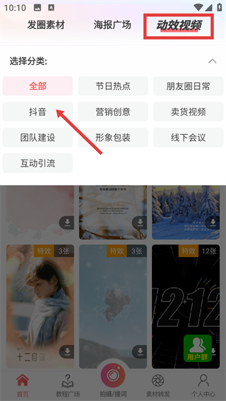 1、进入微脉水印相机,点【动效视频】后可以选【抖音】分类哦。
