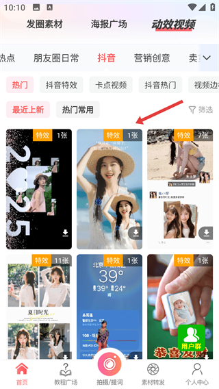 2、在【抖音】分类下,选喜欢的视频素材进入详情页啦。