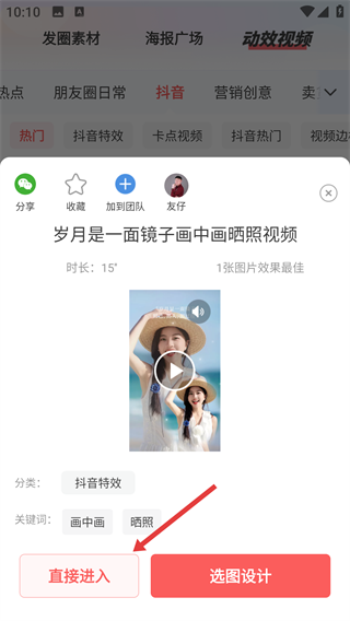 3、打开素材详情,点击【直接进入】开始视频制作吧。