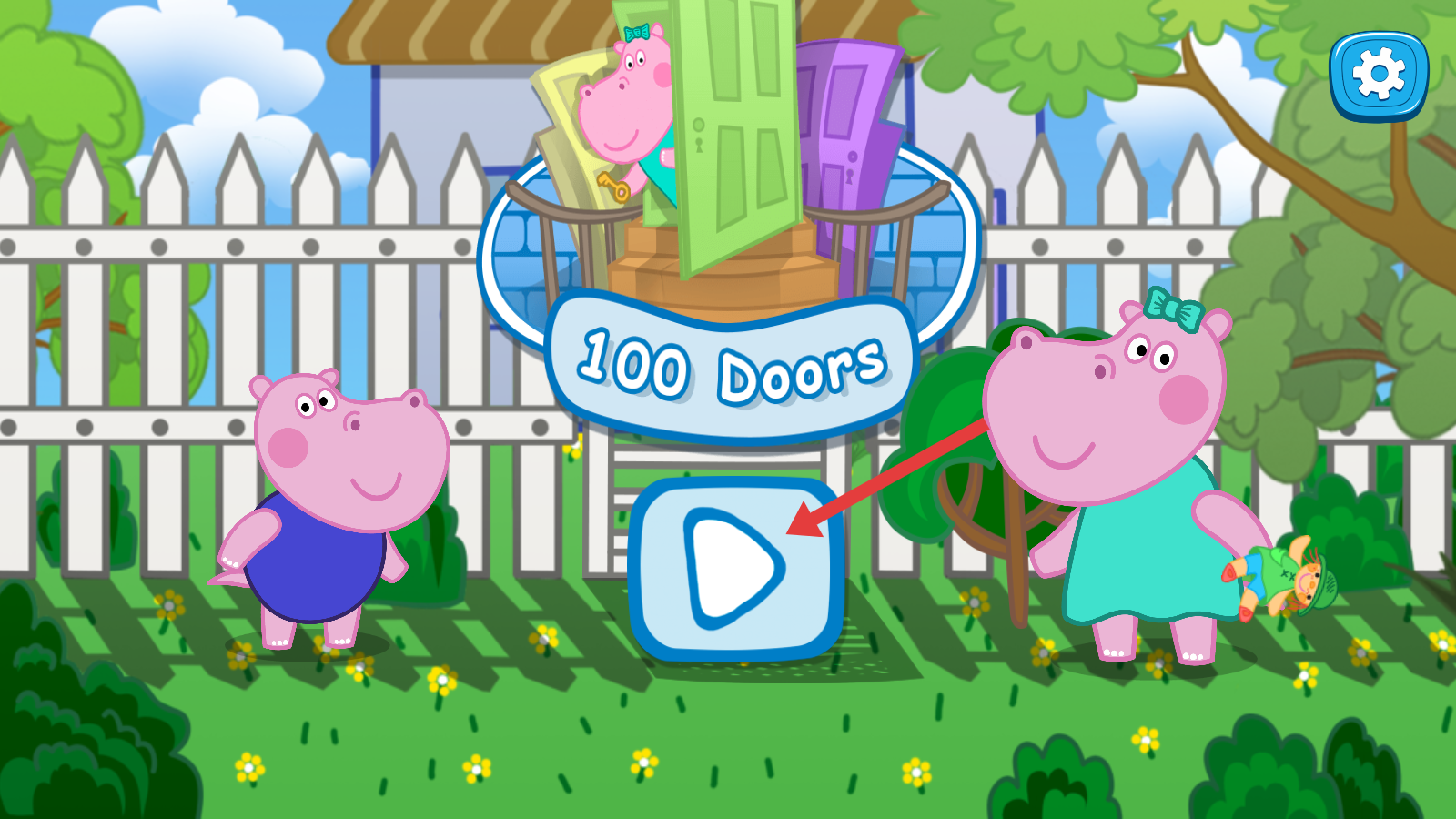 1、打开【寻找冒险的河马】游戏,在首页【100Doors】界面,点击下方的播放键按钮,进入游戏。