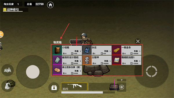 4、找到物资箱后点击打开,获取【小镇箱】【杂志】等资源用于枪械改造或生存补给。