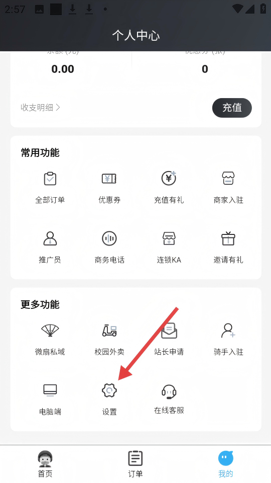 2、在个人中心页面,点击【设置】选项,可进入设置页面。