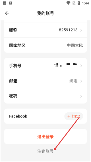 3、在“我的账号”页面,点击底部的“注销账号”选项。