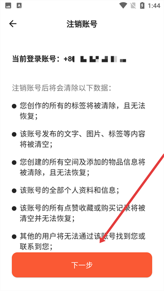4、点击“下一步”按钮,完成账号注销的后续流程。