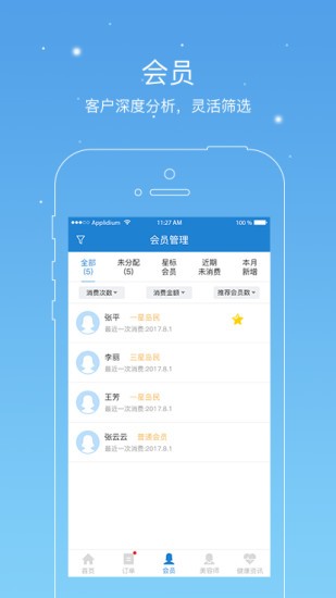 聚焦于商户中的订单管理、会员管理、员工管理。