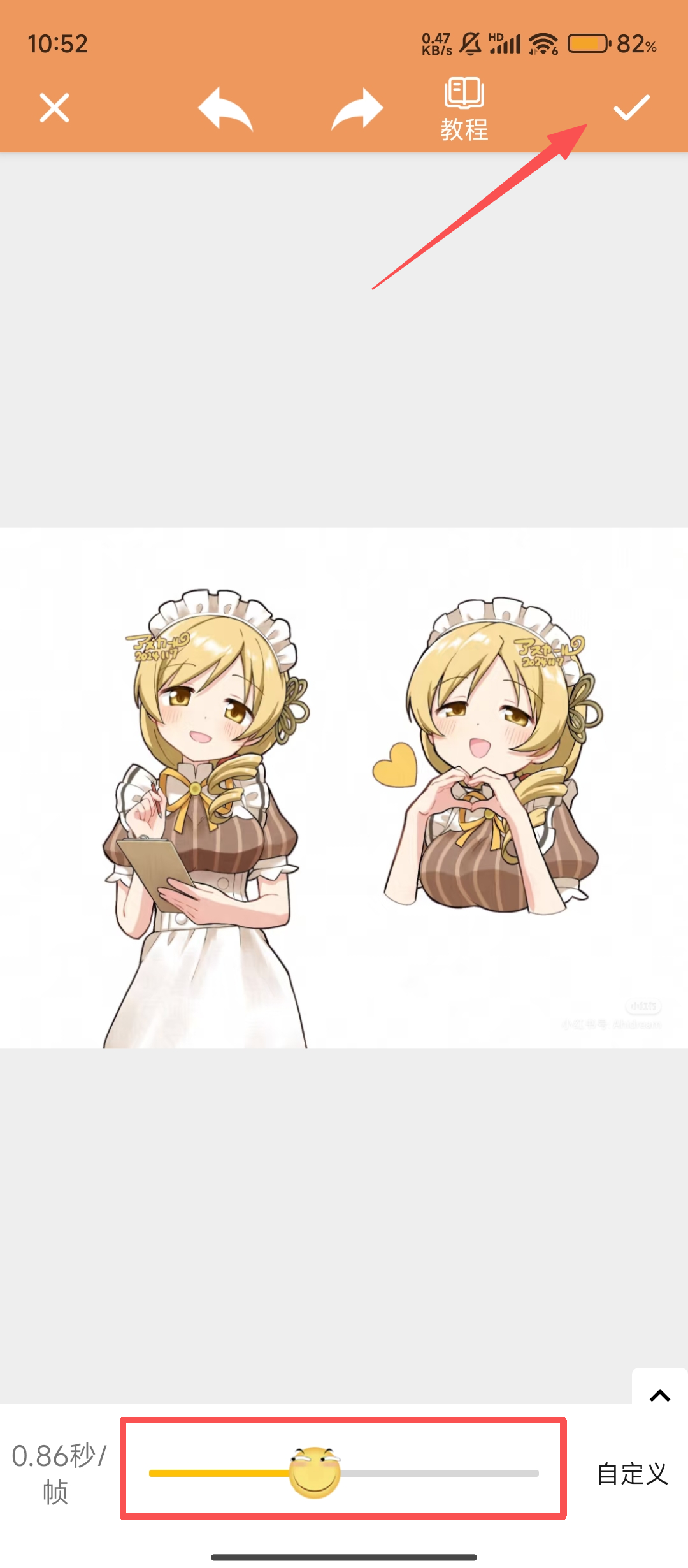 4、调整完毕后,点击右上角的对勾按钮,就能完成GIF的制作,轻松拥有专属的趣味动图啦。