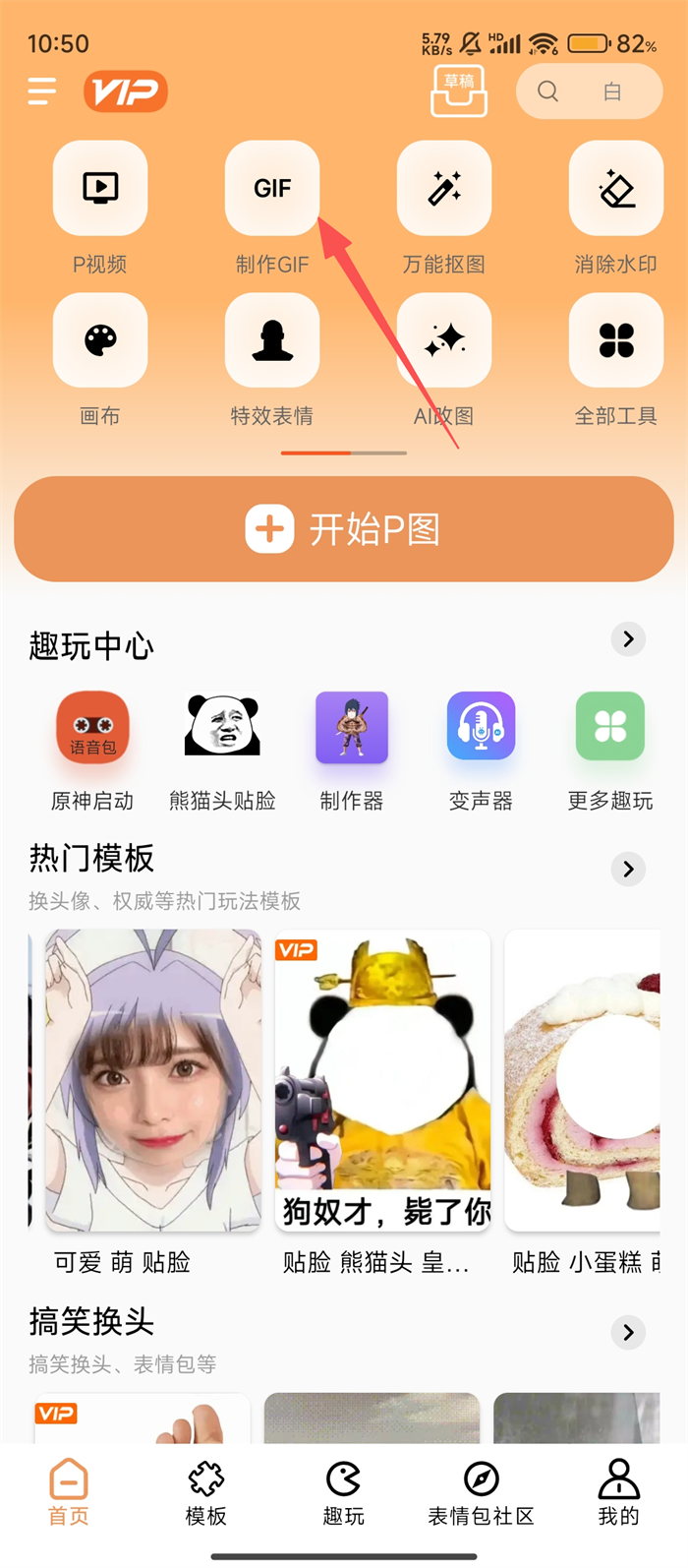 软件提供了丰富的P图恶搞素材可以任你使用,可以通过提供这些素材制作各种好玩有趣的表情图片,不需要去网上搜索表情包,想要什么暴走表情都可以自己制作,支持贴图,抠脸、GIF动图P图、加文字、手撕表情等多种P图功能,可以发挥你天马行空的创意进行创作