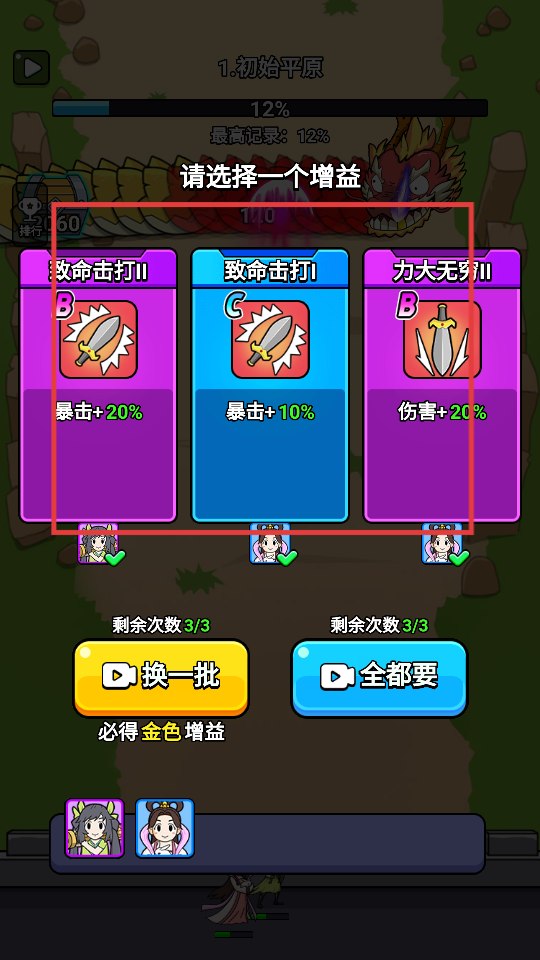 4、从三个选项中选择增益,提升战斗属性,推进游戏进度。