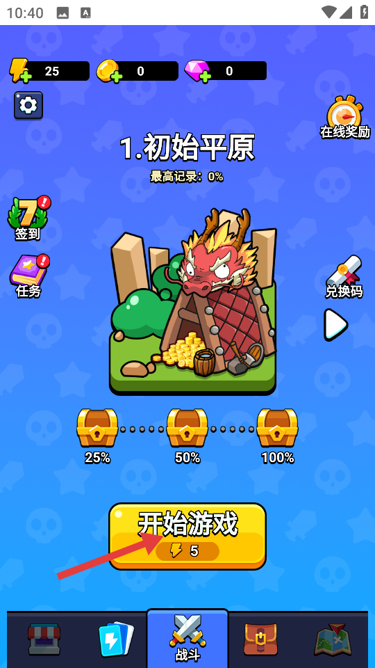 1、点击【开始游戏】,进入【1.初始平原】,开启游戏挑战。