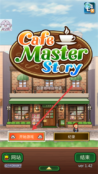 1、点击【开始游戏】按钮,进入咖啡屋经营世界,开启创意咖啡屋的物语之旅。