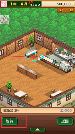 2、在界面中,点击【配置】选项,进入咖啡屋的布局设置界面,可对店内设施进行规划。