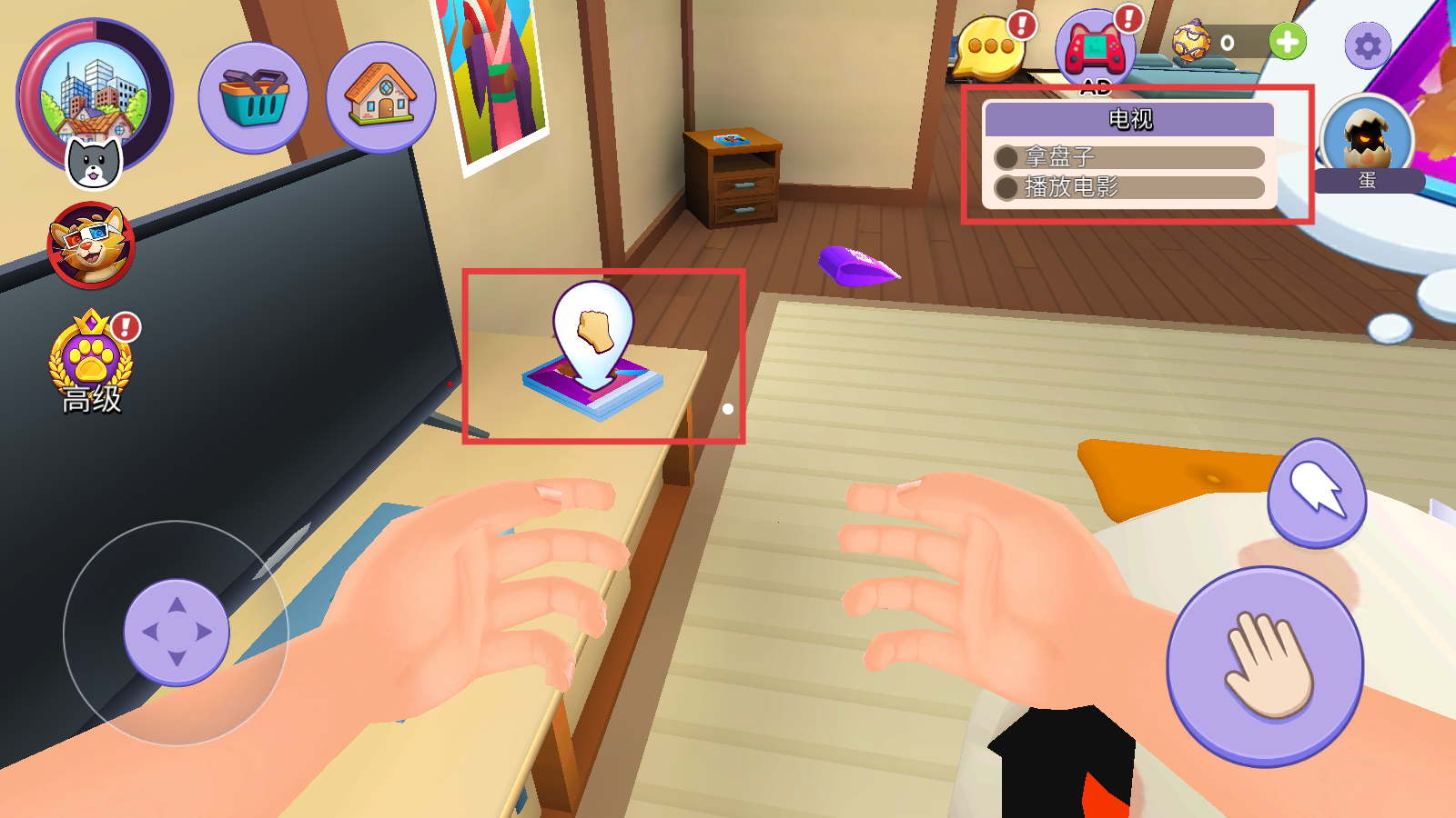 4、按【电视】任务提示,先拿指定物品再【播放电影】。