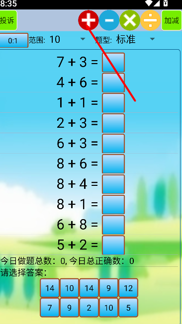 2、点击“加法口算”即可开始基础加法练习,系统会自动生成不同难度的题目。