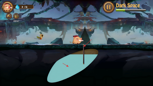 2、操控角色在场景中移动,长按屏幕使小猪能喝到水,但要注意躲避蜜蜂。