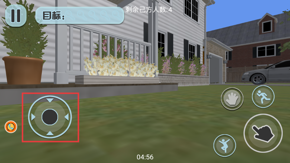 2、在户外场景中,通过左侧虚拟方向键操控角色移动,探索周围环境。