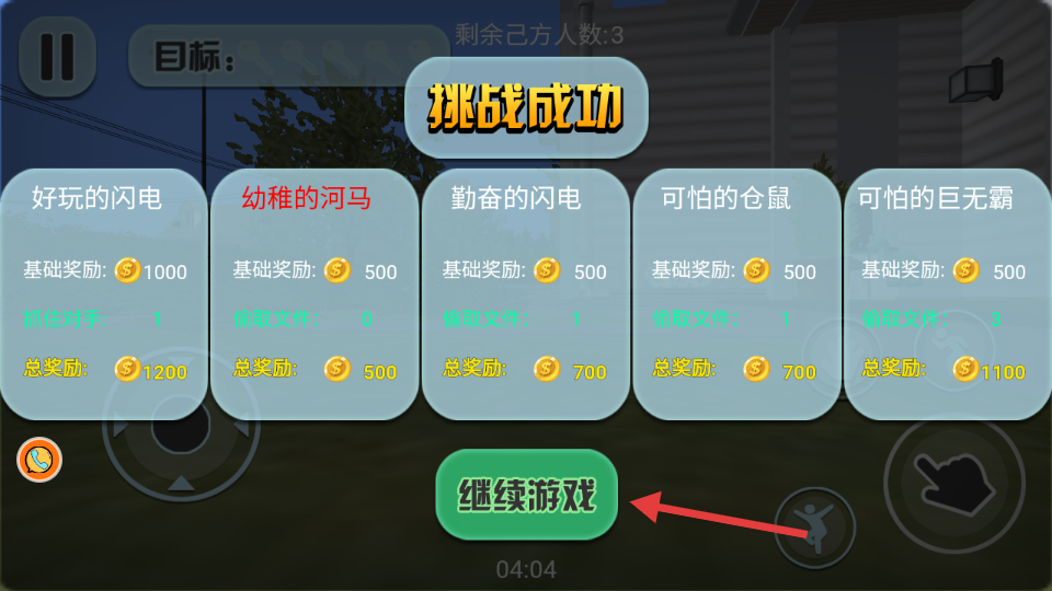 4、成功完成挑战后,会显示【挑战成功】界面,此时点击【继续游戏】按钮,可进入下一轮游戏挑战。
