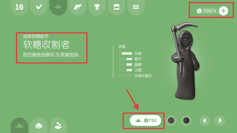 1、可花费750金币解锁软糖收割者,利用金币提升角色,增强战斗能力,为后续挑战做准备。