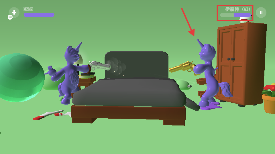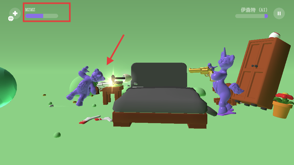 3、战斗中关注敌方伊森特血量,借助床、柜子等掩体躲避,瞄准敌方精准射击,降低其血量。