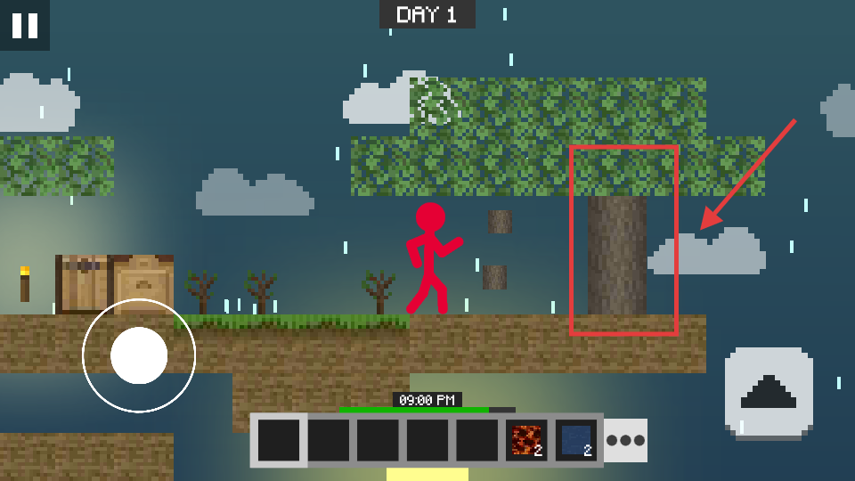 4、攻击【树干】可获取木材,木材是建造和制作的核心资源,下雨时也可砍树,积累基础材料,砍树时注意躲避可能的危险,持续收集以满足生存需求。
