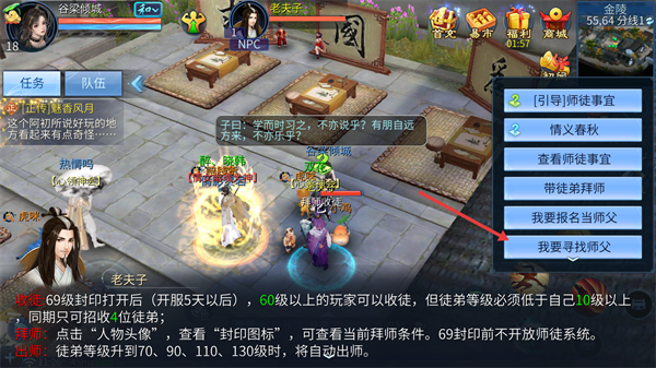1、在金陵城中找到【老夫子】的位置,前往其所在区域。