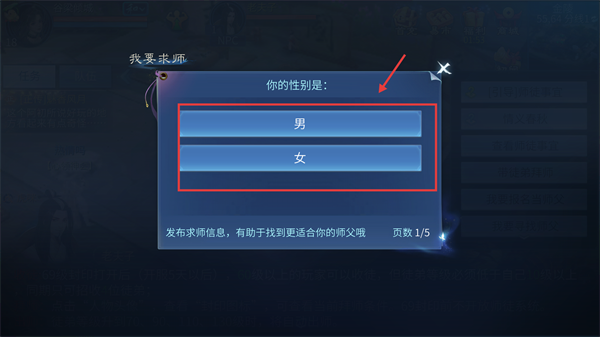 2、与老夫子交互,选择【我要寻找师父】选项,进入求师流程。