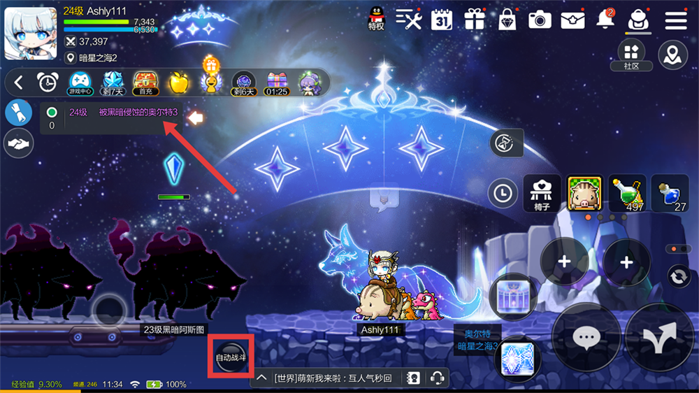 4、接取【被黑暗侵蚀的奥尔特3】任务,点击即可【自动战斗】,打怪升级省心又省力呀。