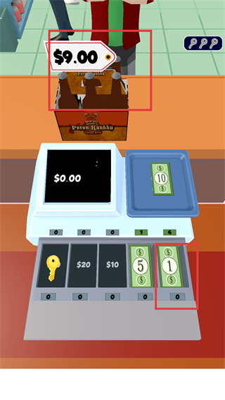 3、看到商品价格【9.00】,在收银机备好【1】元钞票,快速完成找零,提升结账效率。