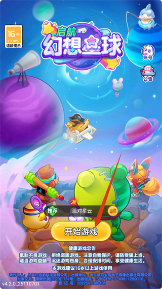 1、进入【启航幻想星球】游戏,点击【开始游戏】按钮,开启星球探索与经营的游戏之旅。