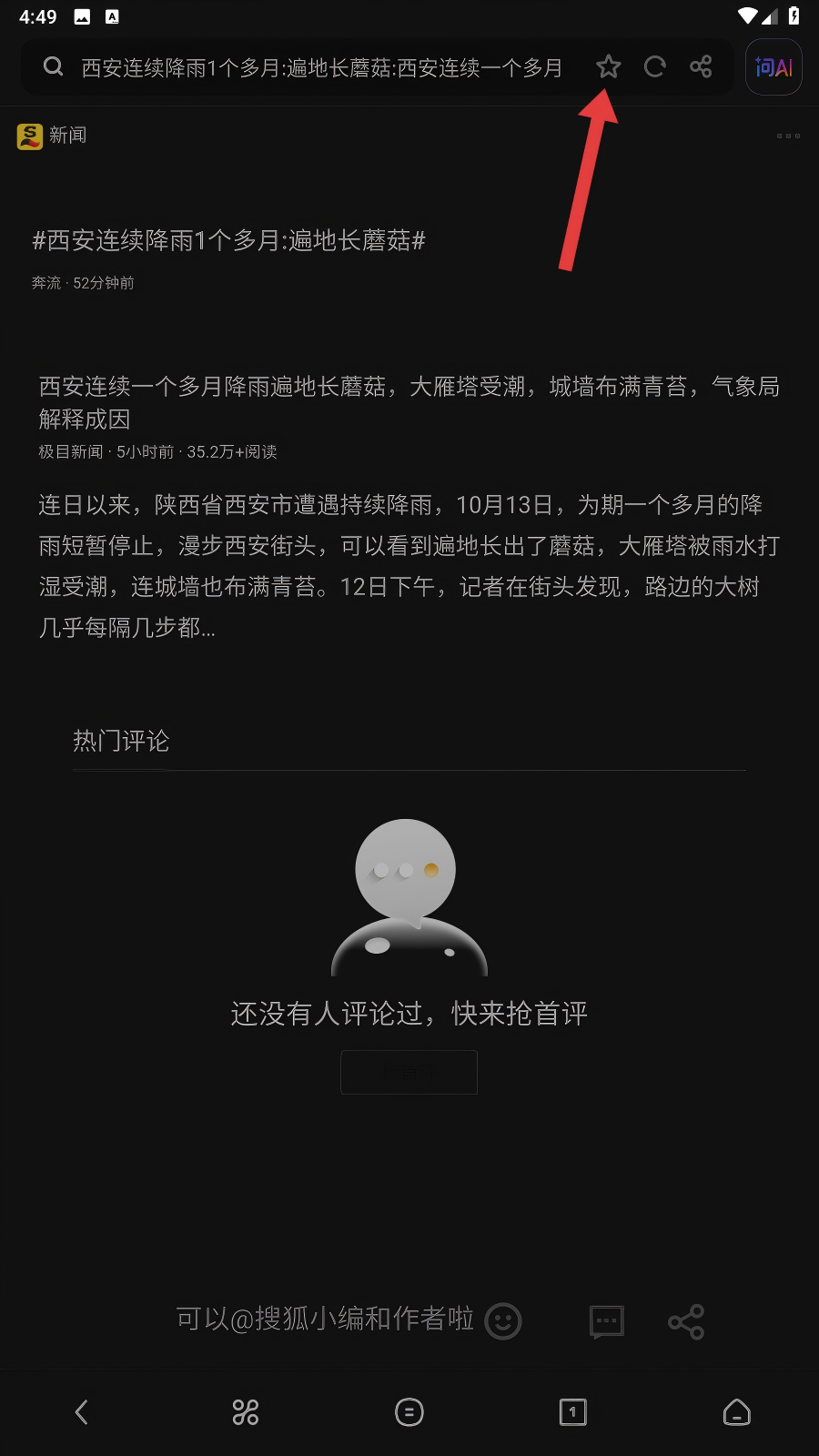 3、进入新闻详情页后,看到顶部的星形图标,点击它就能收藏这篇新闻,方便之后再查看呀。