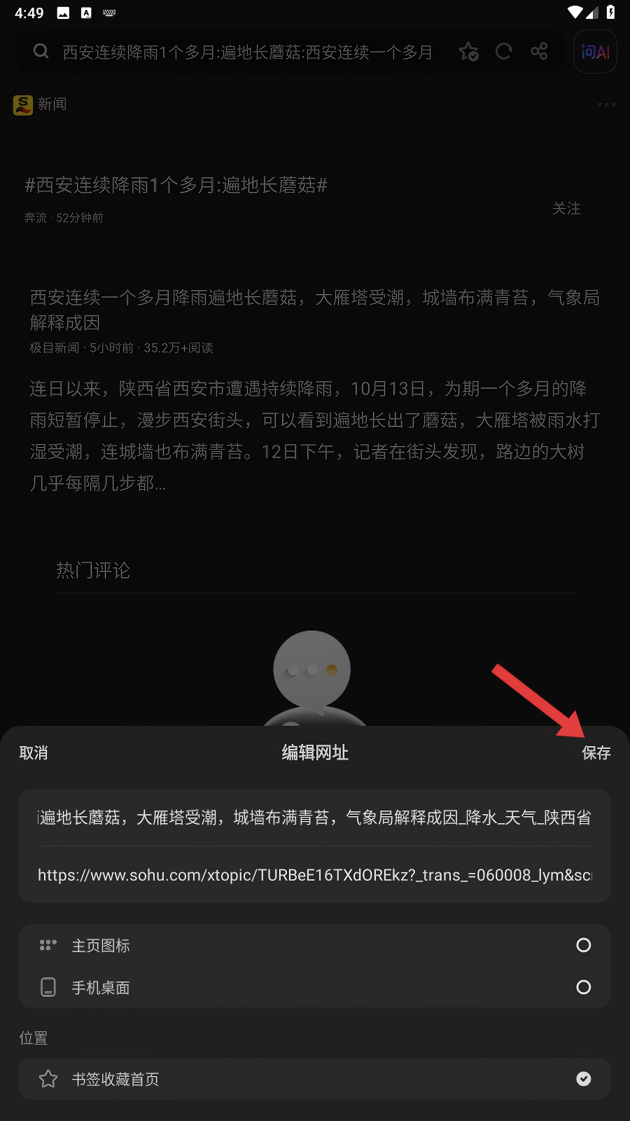 4、点击星形图标后,会弹出【编辑网址】界面,确认好内容后,点击【保存】按钮,这样就成功把网址收藏好啦。