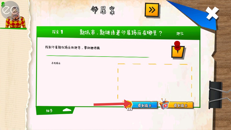 3、点击得到提示,获取寻找玛丽的线索,为完成任务做准备。