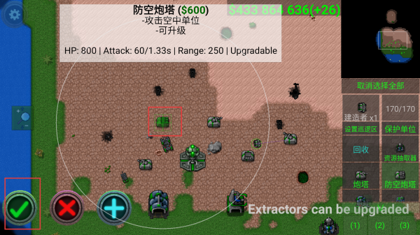 4、建造防空炮塔,攻击空中单位,完成建造后点击确认,强化阵地防御。