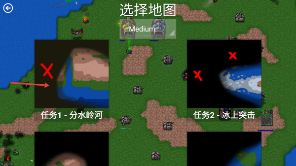 2、选择【任务1分水岭河】地图,开始第一个战役任务,推进游戏进程。