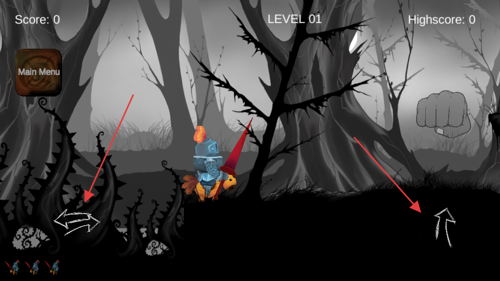 1、游戏开始时,利用左下角左右箭头控制移动,右下角向上箭头控制跳跃,熟悉初始操作。