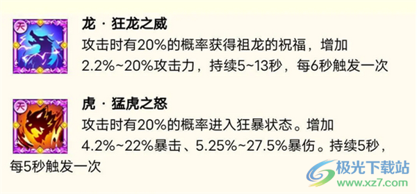 1、龙·狂龙之威,概率触发增强攻击。