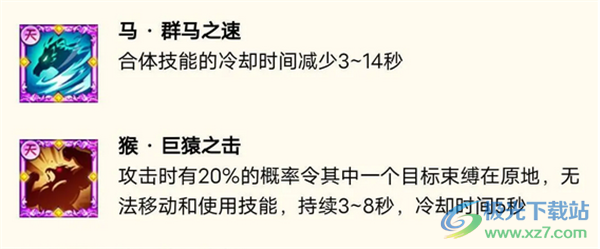 3、马·群马之速,合体技能冷却时间减少。