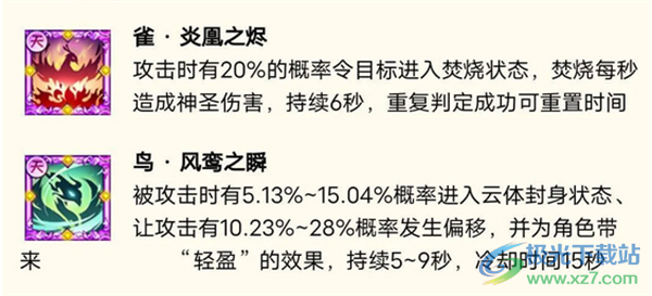 6、鸟·风鸾之瞬,概率闪避攻击并带来“轻盈”效果。