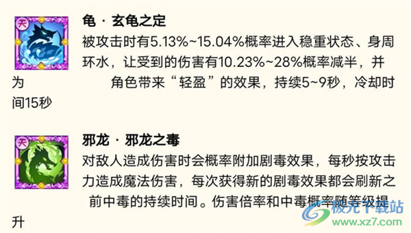 7、龟·玄龟之定,概率让自己受到的伤害减半。